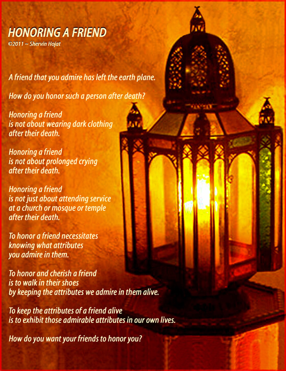 Honoring A Friend by OM Times Editor Tags admirable admire alive attributes cherish church crying death earth plane friend honor mosque Shervin Hojat temple walk in their shoes 0 Comments