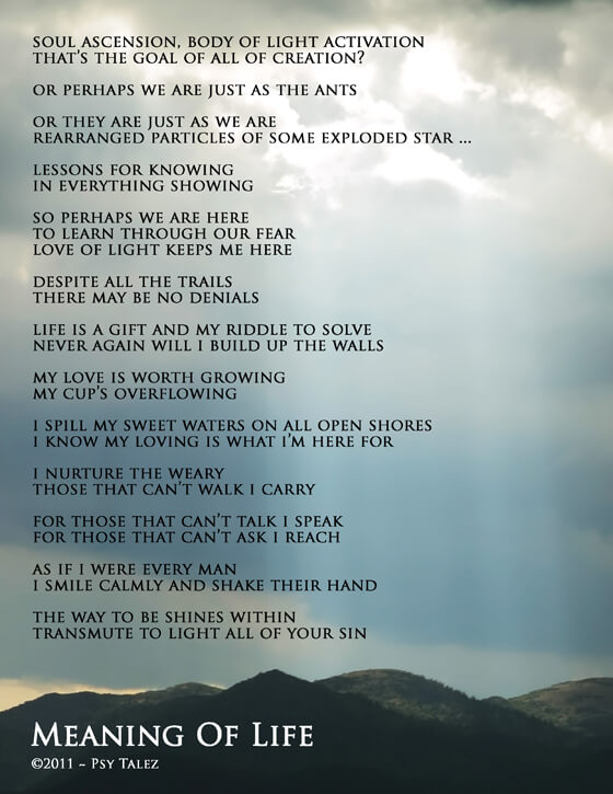 Meaning of Life by Psy Talez by OM Times Editor Tags activation ascension creation denial fear knowing learn lessons light Love Psy Talez shine soul speak star sweet transmute walls water 0 Comments