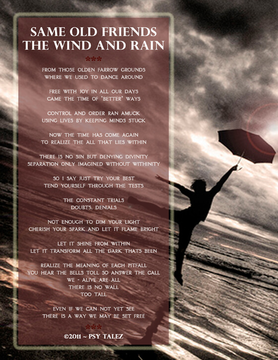 Same Old Friends the Wind and Rain by Psy Talez by OM Times Editor Tags alive control dance dark denial divinity farrow free golden ground imagine joy light Psy Talez sin tests transform trial 0 Comments