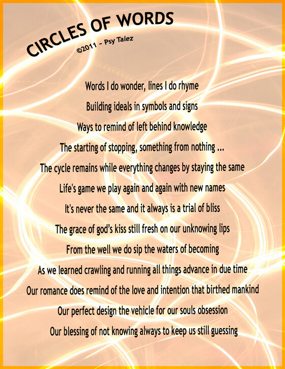Circles of Words by Psy Talez by OM Times Editor Tags blessing bliss building changes circles cycle game God grace ideals Intention knowledge life Love mankind perfect Psy Talez Romance signs symbols time water wonder words 0 Comments