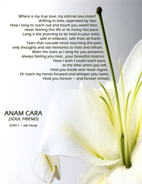 Anam Cara ~ Soul Friend by Jaki Healy by OM Times Editor Tags embrace eternal forever Jaki Healy pain soul mate tears time true love 0 Comments