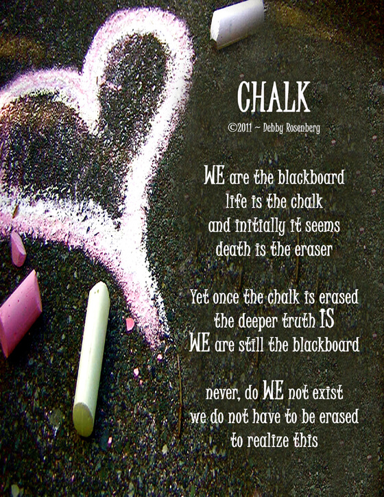 Chalk by Debby Rosenberg by OM Times Editor Tags blackboard chalk death Debby Rosenberg exist life realize truth 0 Comments