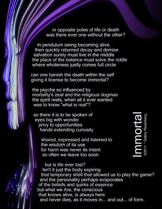 Immortal by Debby Rosenberg by OM Times Editor Tags alive death Debbie Rosenberg essence immortal life lost Mortality personality salvation wonder 0 Comments