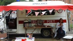 She is also Emergency Poet prescribing poetry from her vintage ambulance.