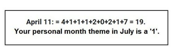 To find your numerological theme for the month of July, add your personal year to the month of 7.