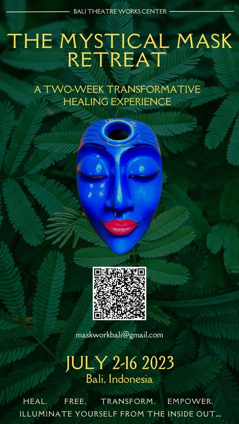 We’ve curated a 14 Day transformational healing mask retreat in Bali, Indonesia, this July 2nd-16th suitable for beginners and veterans. We will do mask work deep-dives on willpower, second chakra (healthy pleasure, sensuality, sexuality & creativity) archetypes, and more! The retreat is all-inclusive: daily yoga, massage, temple tours, trips to the mask maker’s studio, and traditional Balinese Performances. As a plus, participants come away with a unique mask of their own!