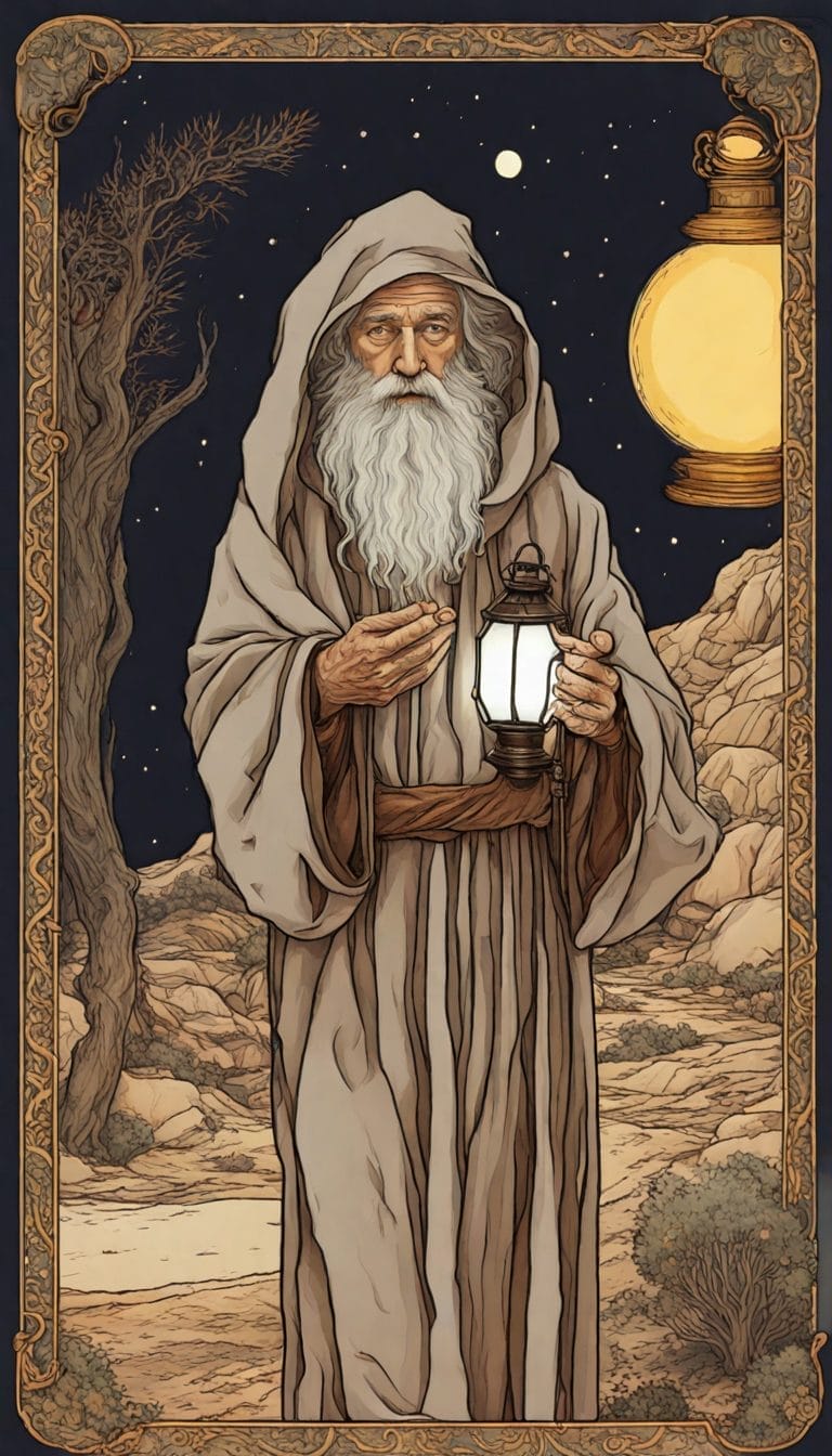 he Hermit is a self-propelled arcanum that assures us that we are our saviors and inspiration and that everything outside of ourselves cannot control our Destiny. As a very ‘magical’ arcane, The Hermit is the archetype of the inner Sun, the wisdom of the ages, much like the Kitsune, the mythical Asian Fox with Nine tails.